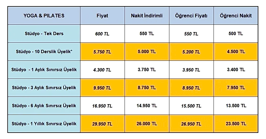 - 10 Derslik Üyelik paketlerimizin geçerlilik süresi 3 aydır, bu süre içinde kullanılmayan derslerin hakkı kaybolacaktır.